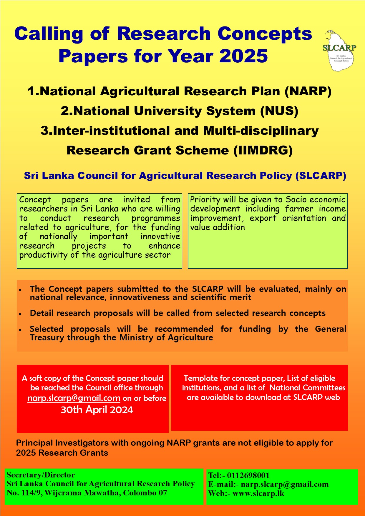 Calling for Research Concept Papers for National Agricultural Research Plan (NARP) Grants for Year 2025