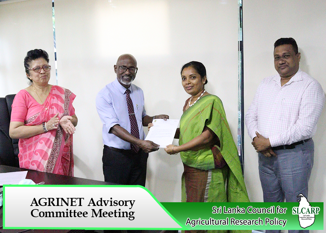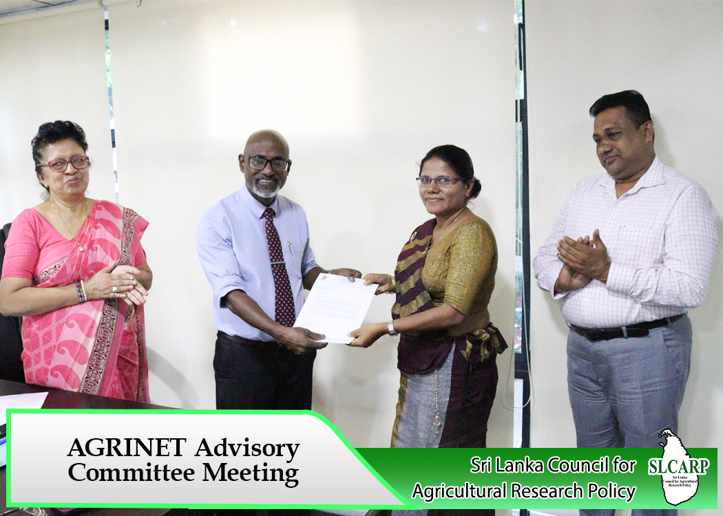 The first meeting of the AGRINET (Agricultural Library Information Network) Advisory Committee meeting was held on 03rd June 2025 at 9.00 a.m. at the Sri Lanka Council for Agricultural Research Policy (SLCARP) premises. The chairman SLCARP welcome all the Agrinet committee members and discussed current activities related to research funding for NARS Scientists and role of libraries in NARS to facilitating information required for proposal writing by the Scientists. Accordingly he requested to conduct awareness progammes through Agrinet service for the researchers to access the current publications. During this meeting Chairman also handed over the appointment letters of the Members in the Agrinet Committee .